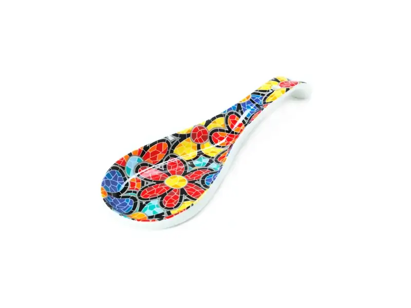 This decorative ceramic magnet depicts a vibrant salamander framed by a lush explosion of colorful flowers, capturing the essence of Mallorca in every detail. With a white background that enhances its visual appeal, this magnet stands out for its hand-painted mosaic design, where bright shades of blue, red, yellow and green combine harmoniously, evoking both the rich Mallorcan folklore and the natural beauty of the island. The salamander, a symbol of local biodiversity, is shown in a dynamic pose, surrounded by stylized flowers that add a touch of freshness and vitality. The word “MALLORCA” is elegantly printed at the bottom, reinforcing the authenticity of this souvenir.