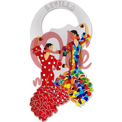 Abridor metálico con el diseño de una bailaora, inspirado en la cultura flamenca de Barcelona. Este original abridor está decorado con elementos de epoxy que le dan un acabado brillante y presenta una colorida representación de una bailaora vestida con un traje lleno de vibrantes estampados en tonos rojos, verdes y azules. Sobre la figura, se lee «Barcelona», lo que lo convierte en un souvenir ideal para recordar la esencia de la ciudad.