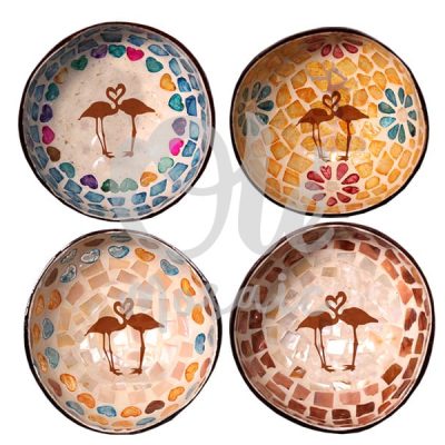 Los bols de mosaico de OLE MOSAIC están fabricados en cerámica o en coco natural y decorados con llamativos motivos de toros, salamandras, flores, mosaicos modernistas y monumentos de Barcelona y Mallorca. Estos bols de cerámica y coco combinan funcionalidad y diseño artístico, ideales tanto como decoración como para el uso diario en el hogar.