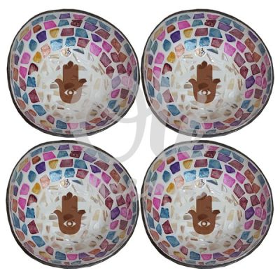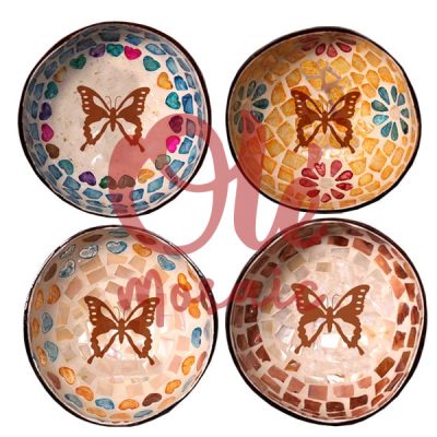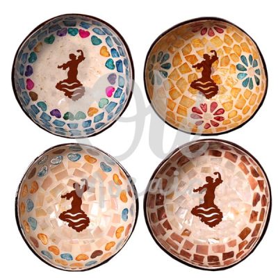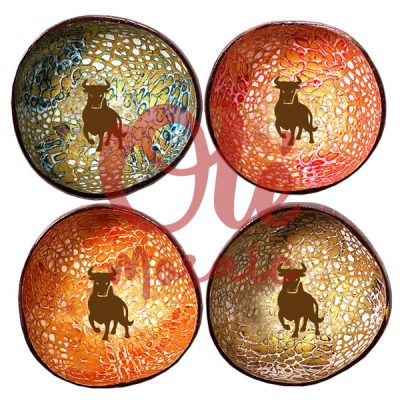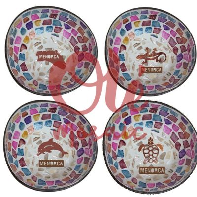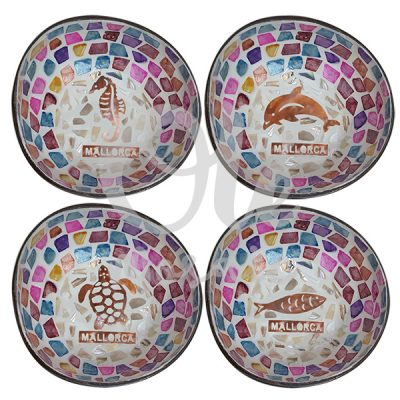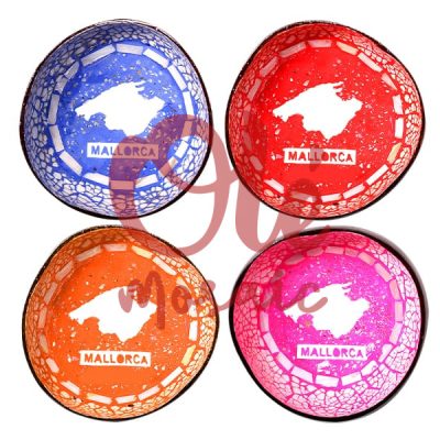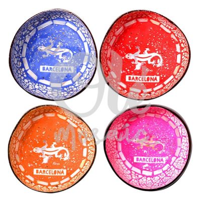 Los bols de mosaico de OLE MOSAIC están fabricados en cerámica o en coco natural y decorados con llamativos motivos de toros, salamandras, flores, mosaicos modernistas y monumentos de Barcelona y Mallorca. Estos bols de cerámica y coco combinan funcionalidad y diseño artístico, ideales tanto como decoración como para el uso diario en el hogar.