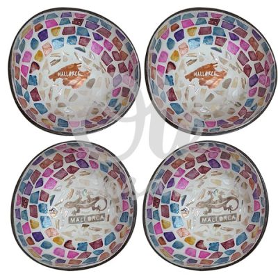 4 Bols de coco de 13 x 6 cm. Abanico. Mosaico.