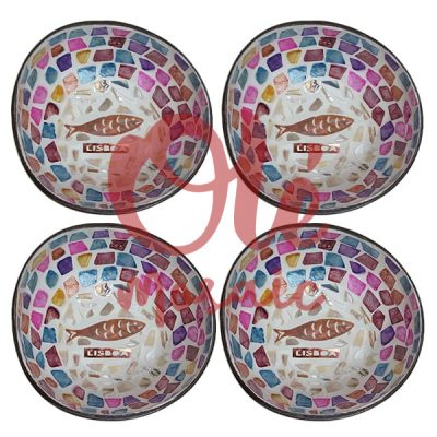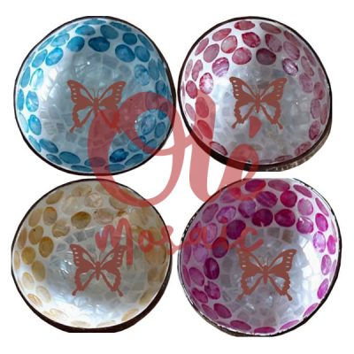 4 Bols de coco de 13 x 6 cm. Diseño en Mosaico. Mariposa.