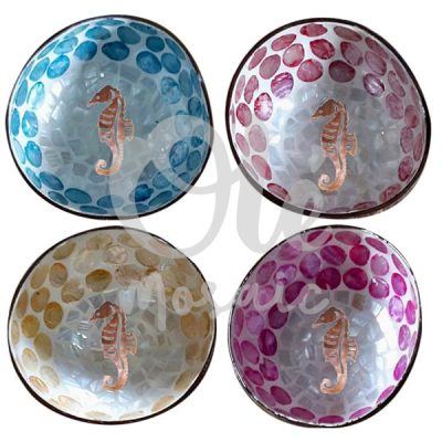 4 Bols de coco de 13 x 6 cm. Caballito de mar. Tonos metálicos.