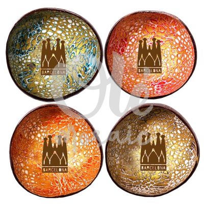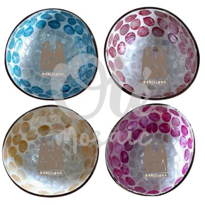 4 Bols de coco de 13 x 6 cm. Sagrada Familia en Mosaico. Barcelona.