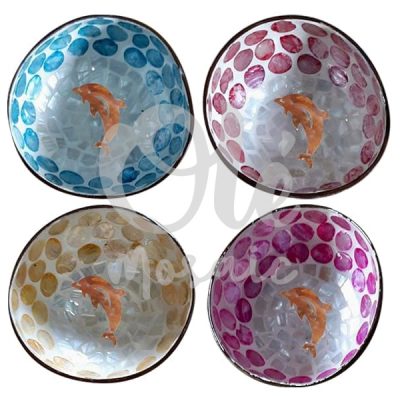 4 Bols de coco de 13 x 6 cm. Acabado brillante. Delfín.