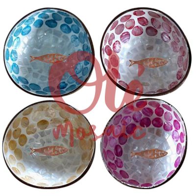 4 Bols de coco de 13 x 6 cm. Tortuga.Mosaico. Barcelona.