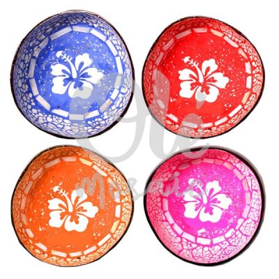 4 Bols de coco de 13 x 6 cm. Azul, rojo, naranja y rosa. Ibiscus.