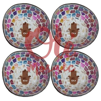 4 Bols de coco de 13 x 6 cm. Mano Hamsa.
