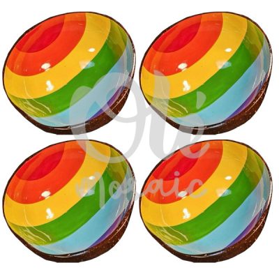 4 Bols de coco de 13 x 6 cm. Arcoiris.