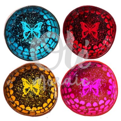4 Bols de coco de 13 x 6 cm. Mariposa.