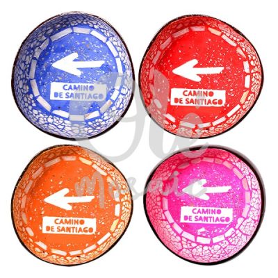 4 Bols de coco de 13 x 6 cm. Flecha. Camino de Santiago.