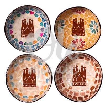 4 Bols de coco de 13 x 6 cm. Sagrada Familia. Barcelona. Motivos florales.