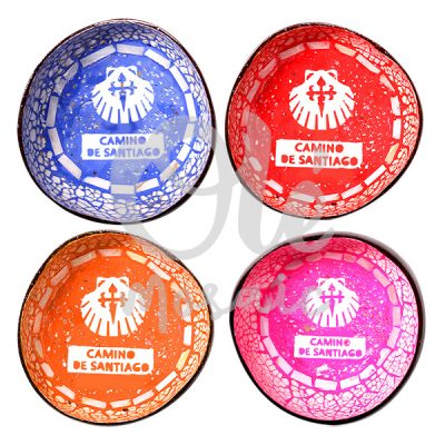 4 Bols de coco de 13 x 6 cm. Concha. Camino de Santiago.