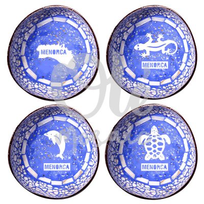 4 Bols de coco de 13 x 6 cm. Animales del mar. Menorca. Balear.