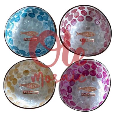 4 Bols de coco de 13 x 6 cm. Sardina. Azul, rosa y dorado. Lisboa.