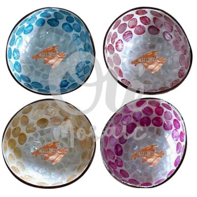 4 Bols de coco de 13 x 6 cm. Caballito de mar. Tonos metálicos.