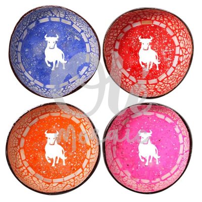 Bol de coco naranja. Mosaico. Toro.