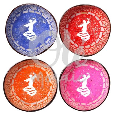 4 Bols de coco de 13 x 6 cm. Bailaora. Mosaico.