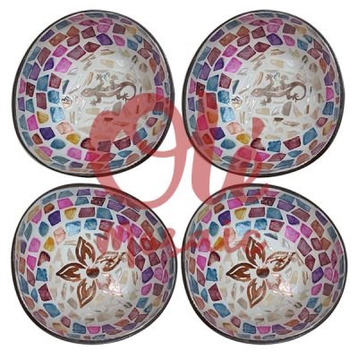 4 Bols de coco de 13 x 6 cm. Tortuga. Mosaico.