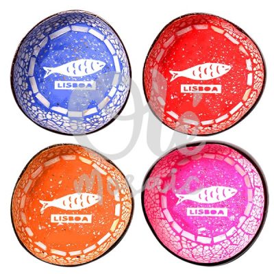 4 Bols de coco de 13 x 6 cm. Sardina. Lisboa. Corazones y flores.