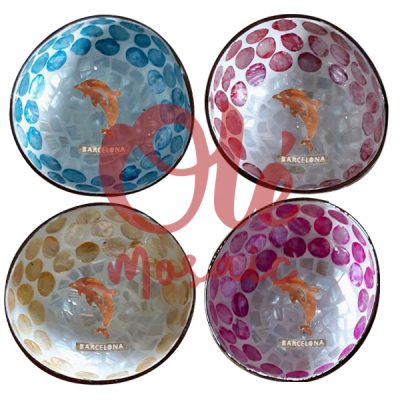 4 Bols de coco de 13 x 6 cm. Mariposa. Mosaico.
