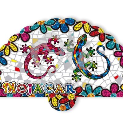 Souvenirs con la inscripción «España», «Barcelona», «Madrid» o «Parc Güell», decorados al estilo trencadís de Gaudí, con colores vivos y llamativos: Sagrada Familia, la Giralda, el Camino de Santiago, etc