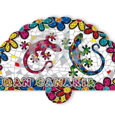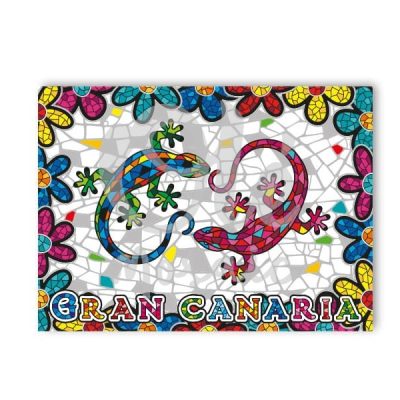 Souvenirs de Gran Canaria decorados con mosaico, inspirados en sus dunas, su mar y su rica cultura isleña. En OLE MOSAIC ofrecemos una selección de imanes, llaveros, tazas, cucharillas, abridores y mugs con motivos como lagartos, flores tropicales y paisajes de la isla, reinterpretados con un toque colorido y moderno.