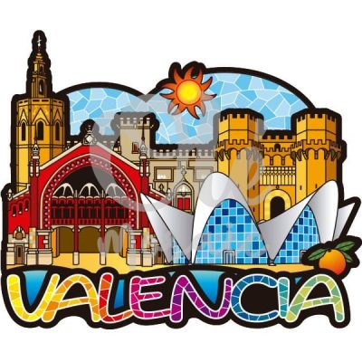 Imán de resina. Letrero. Valencia. Azul. 11 cm.