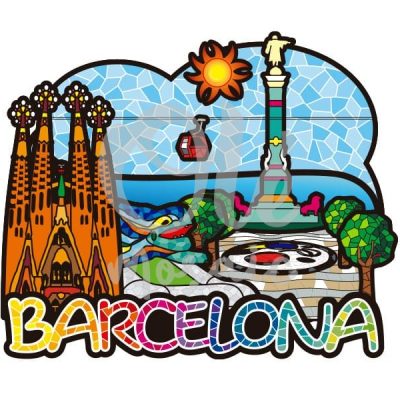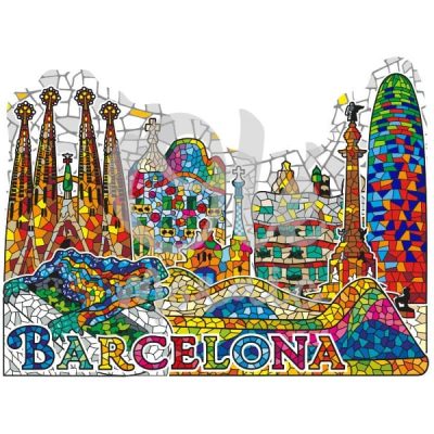 Imán de metal. Panorámica. Mosaico. Arquitectura. Barcelona. 8 cm.