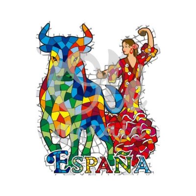Imán de metal. Toro. Negro. Bandera de España. 11 cm.