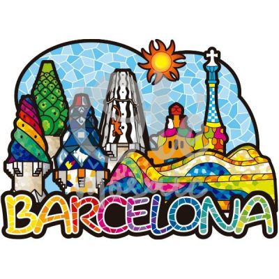 Imán de resina. Letrero. Mosaico. Gaudí. Barcelona. 11 cm.