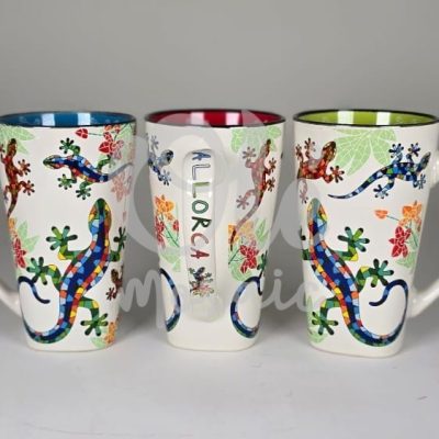 Mug XL de cerámica. Salamandra. Mallorca. Beige. Motivos florales.