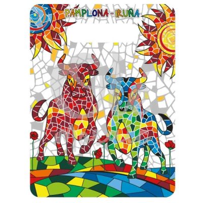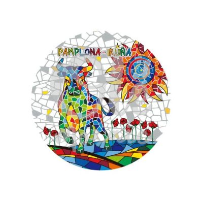 Souvenirs de Pamplona decorados con mosaico, inspirados en los Sanfermines, los encierros y su casco antiguo lleno de historia. En OLE MOSAIC ofrecemos una vibrante colección de imanes, llaveros, tazas, platos, cucharillas y abridores con diseños del toro, pañuelos rojos y escenas típicas reinterpretadas con nuestro colorido estilo.