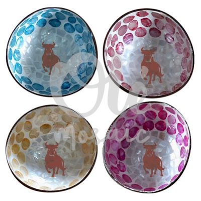 4 Bols de coco de 13 x 6 cm. Azul, rosa, amarillo y lila. Toro.